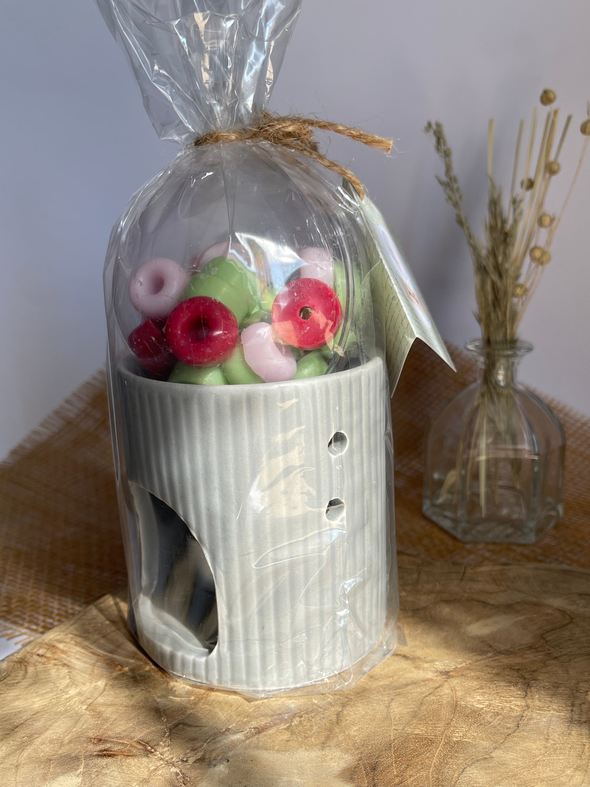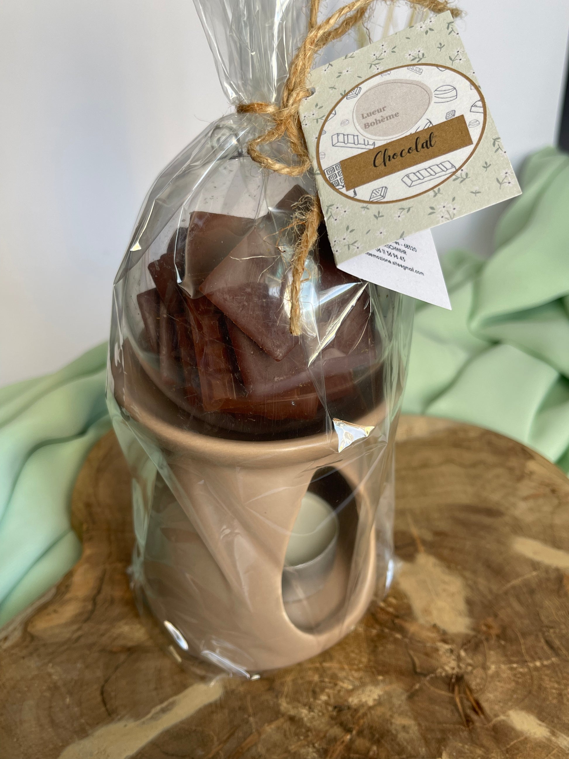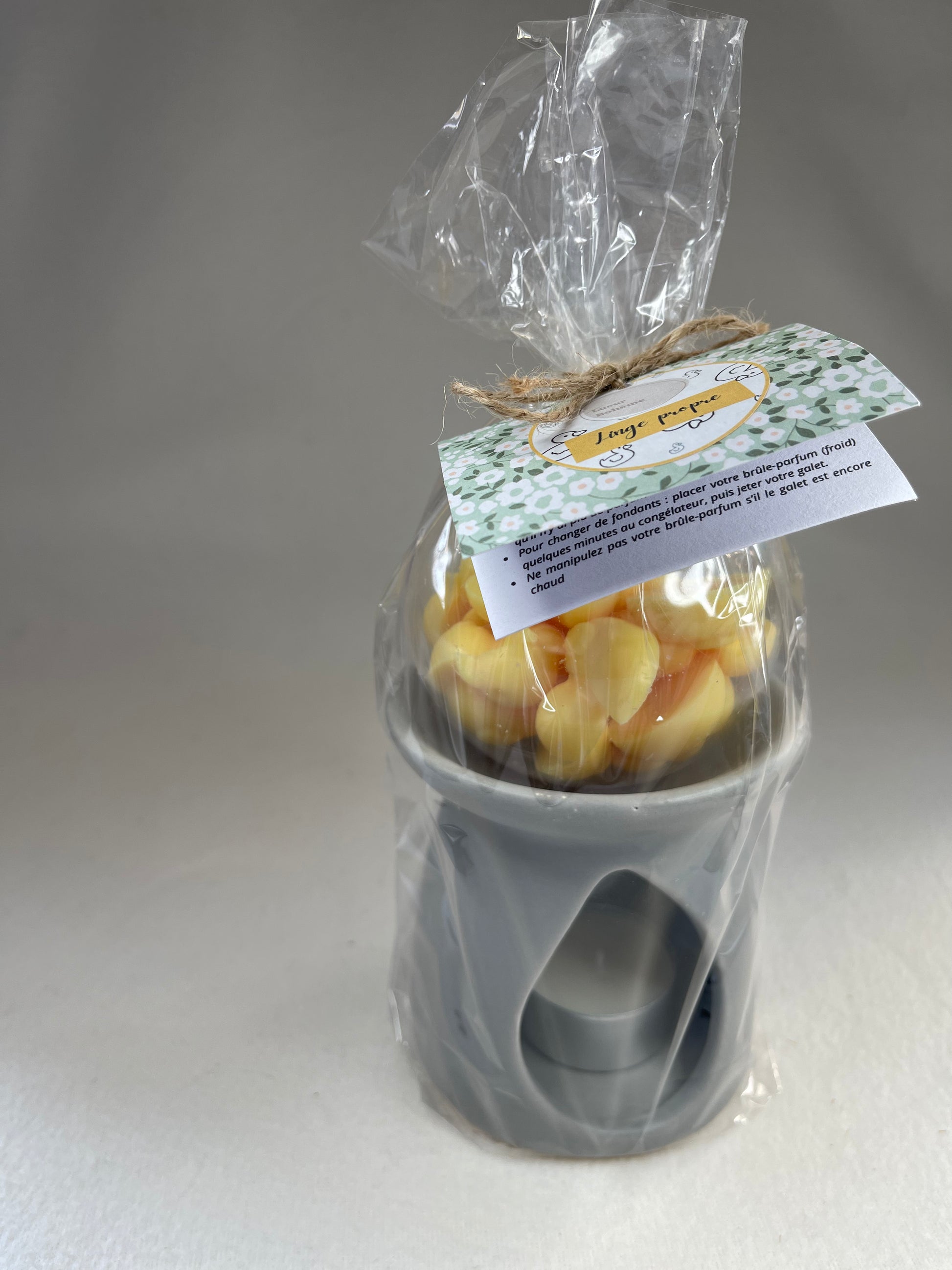 Chaque sachet comprend un brûle-parfum, une bougie chauffe-plat et 70 gr de fondants.